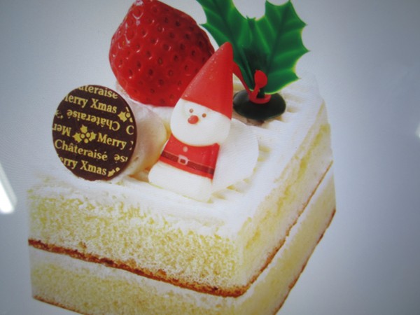 サンタと苺、ポイントチョコをトッピングでクリスマス会にピッタリ!のショートケーキです(^_-)-☆