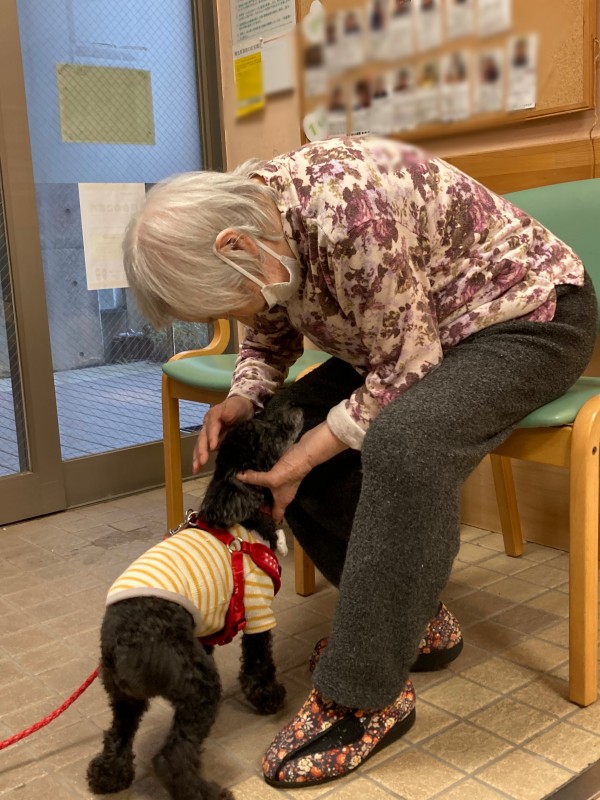 さて、師走のある日、嬉しい家族の面会です。なんとペットのワンちゃんが大好きな“おかあさん”に会いに来てくれたのです(◍>◡<◍)