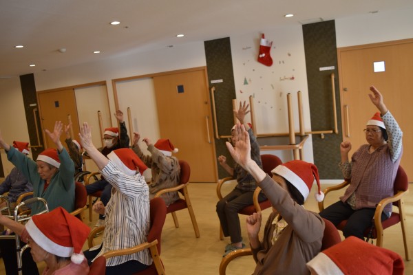 クリスマスソングに乗せての体操に皆様、背筋を伸ばしての気持ち良い運動でした。