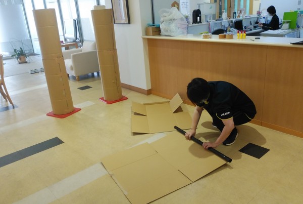 段ボールをしごいて柔らかくするあたり…