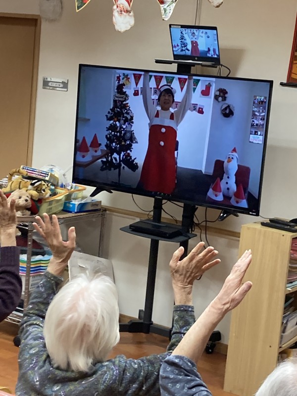 画面に映るサンタの格好をしたインストラクターにあわせて