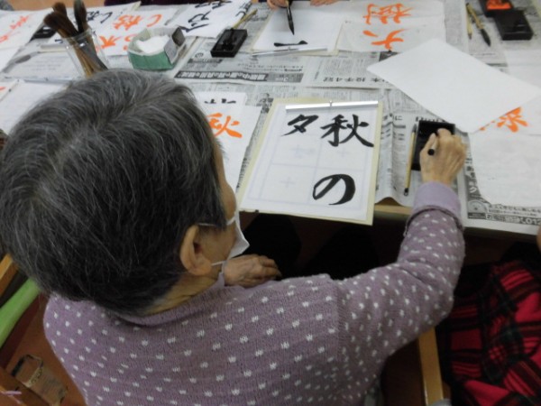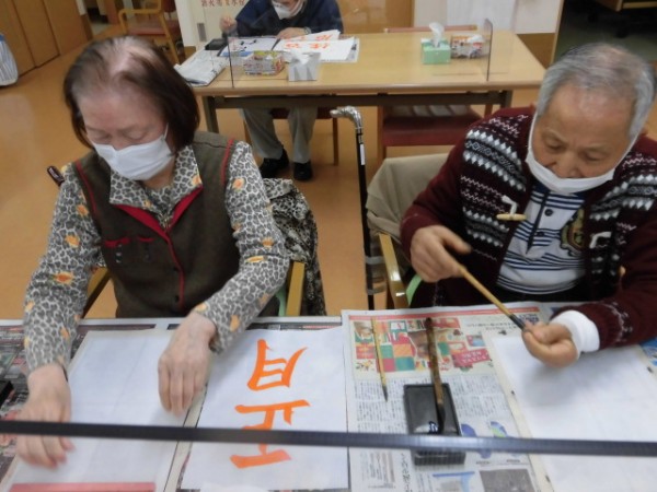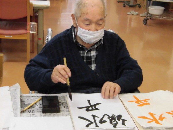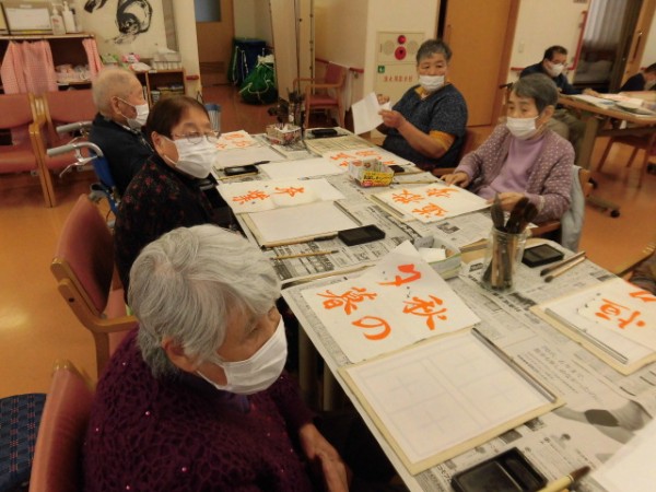 皆様1時間お疲れさまでした。書道の最後にご利用者様の簡単なお誕生日会を行いました!