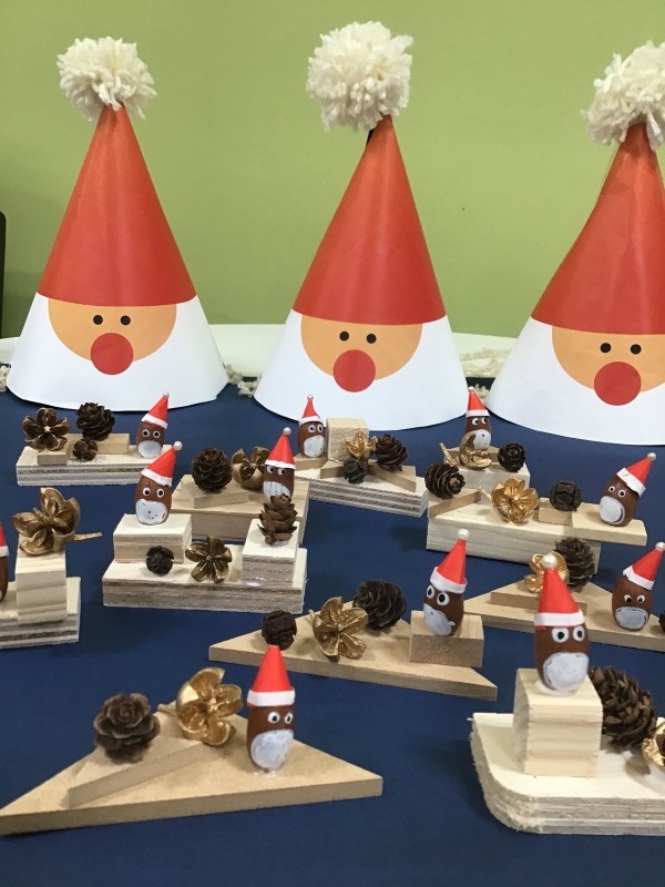 サンタの三角帽子と木の実アート