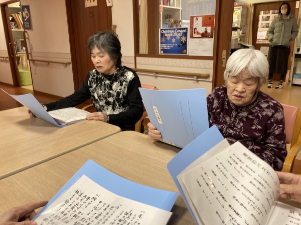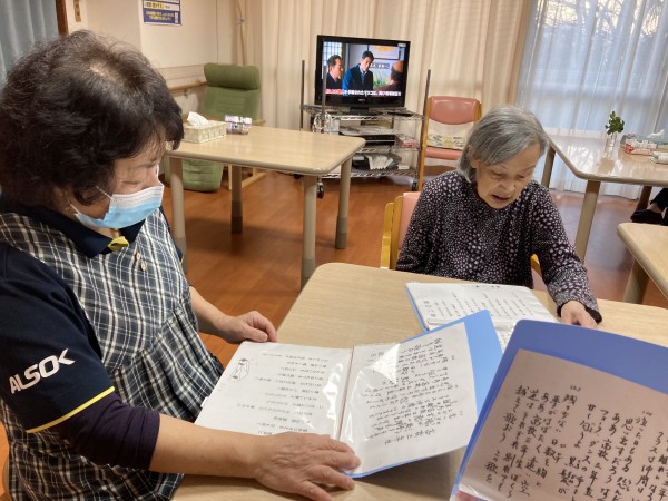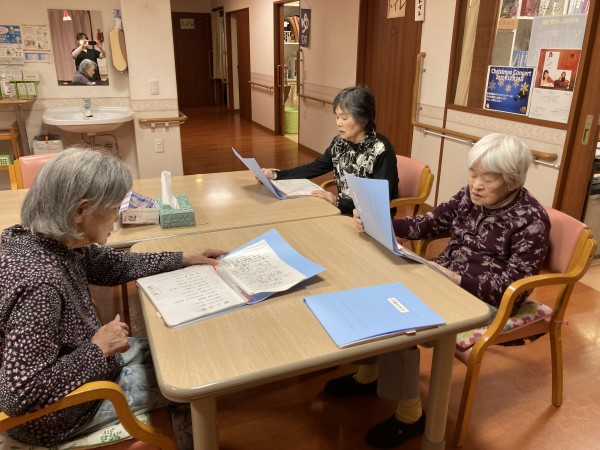 日々利用者様の不安な気持ちにさせないように取り組みの一つとして職員も一緒に昔の歌を唄っている様子をご覧ください。