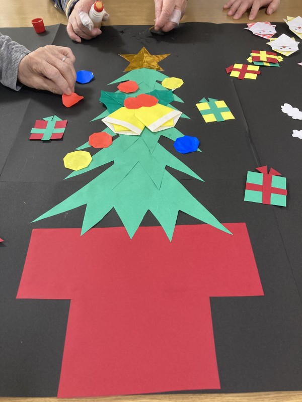 ツリーの周りや星をきれいに貼ることが出来ました!
