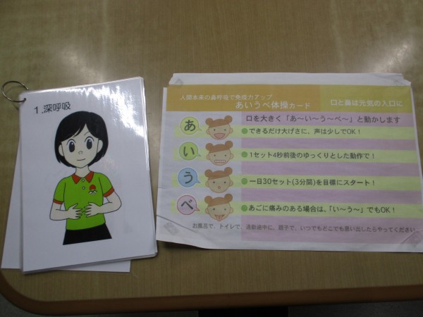 上記の教材を使い、リンパマッサージ・あいうべ体操を行いました。
