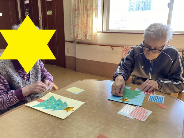 台紙に木、星をのり付けします。