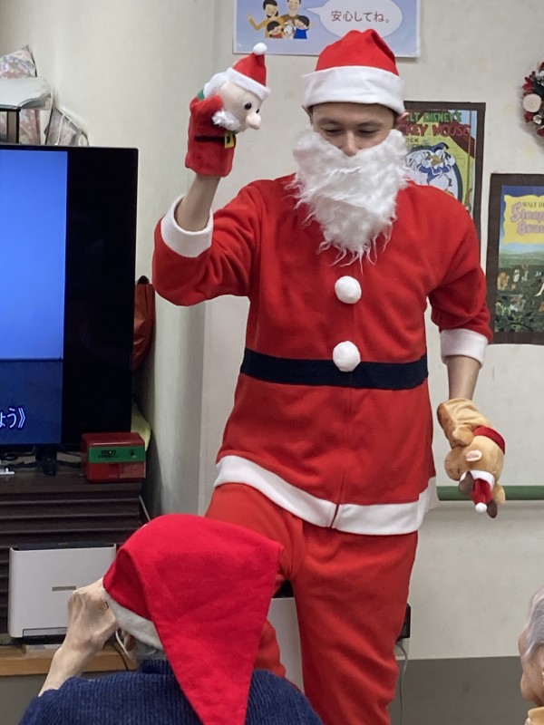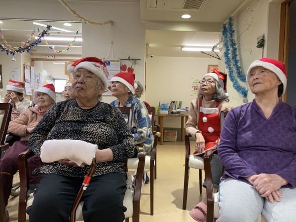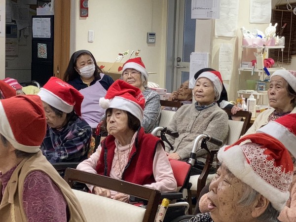 入居者様もサンタ帽をかぶって楽しみにしております。