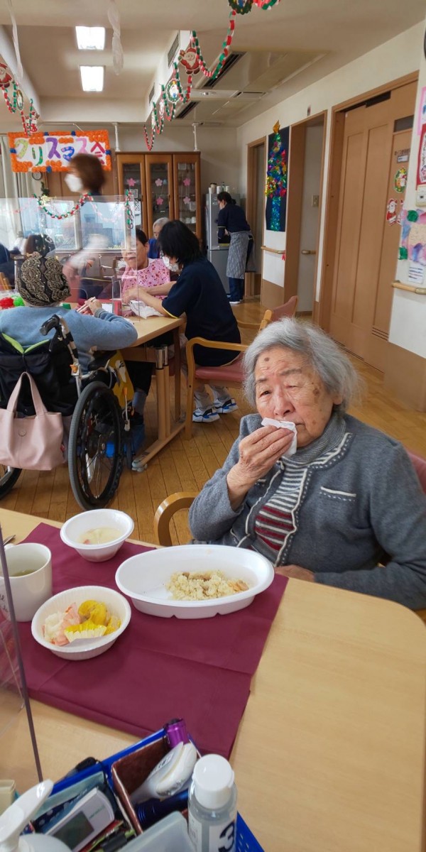 デイサービスのクリスマス会ですから、午前中は『入浴』という外せないイベントがあるので、