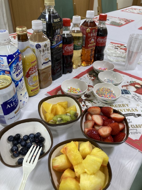 トッピングやフルーツを用意すると利用者様は「奇麗だね!」、「フルーツいい匂いだね!」とウキウキしている様子です♪