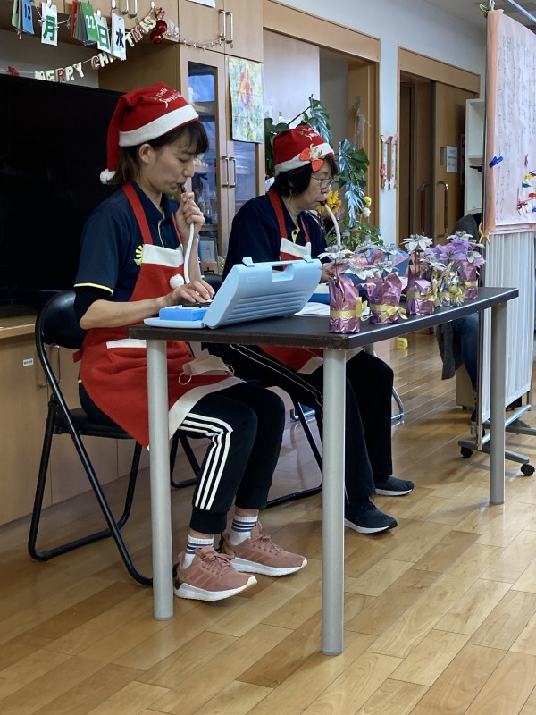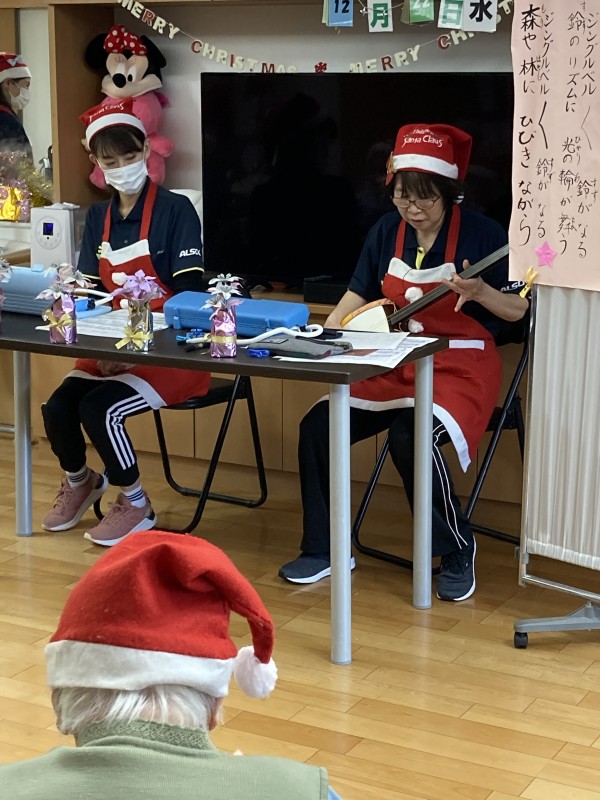 毎年クリスマス会で何をしようか話し合いをするのですが、職員の出し物もなかなか練習時間が取れない事もあり各自自宅で練習かぶっつけ本番でできるのってクリスマスソングを歌うか演奏するか…という事で今年は演奏に決定!