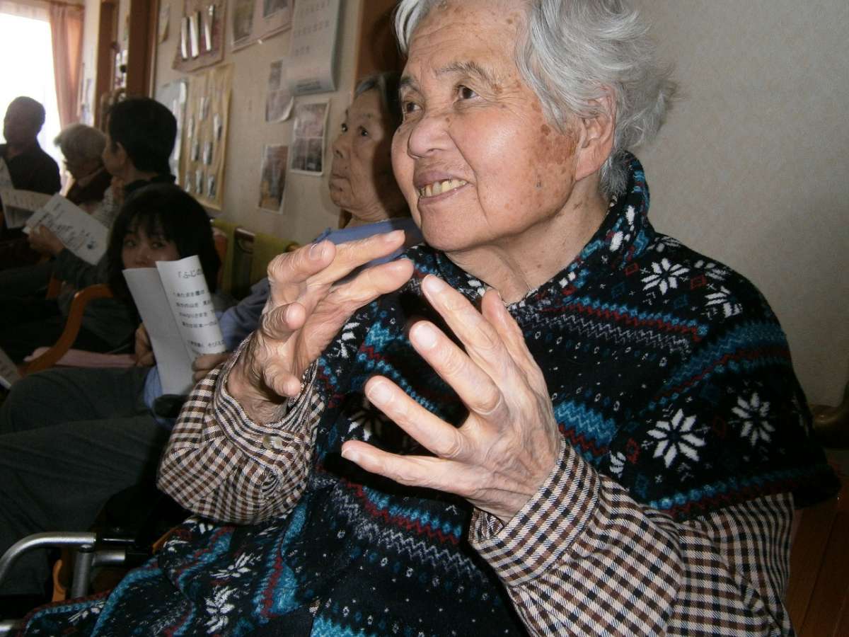 曲に合わせて手をたたき、リズムをとられています。イキイキされた表情を是非ご覧頂きたいです!