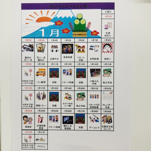 こんにちは。1月のレクカレンダーです