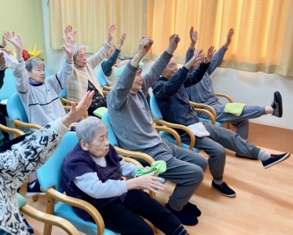 墨田のご利用者様は、タオルを使った体操があっているようで、写真のように手足がとても動きます。