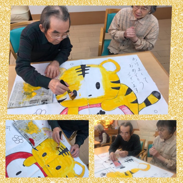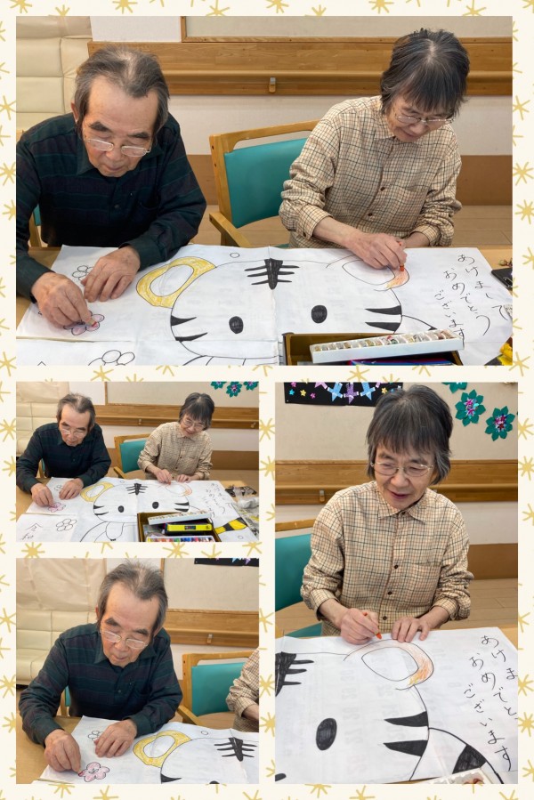 みんなの家川越寺尾です!寅年のイラストに丁寧に色塗りをしてくださりました!