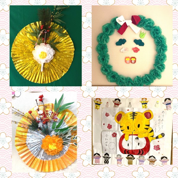 手作りの飾りがとてもきれいです✨完成した寅のイラストを廊下の掲示板に飾りました!
