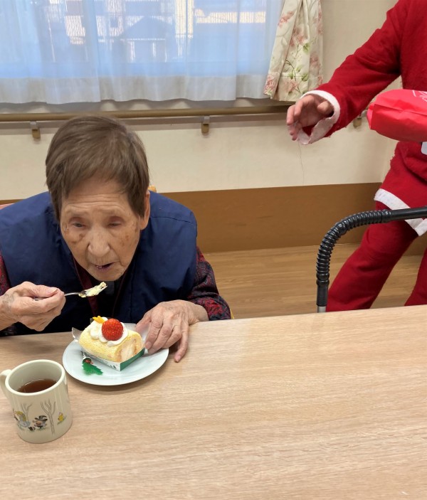 本日のおやつはクリスマスケーキです(^^)/