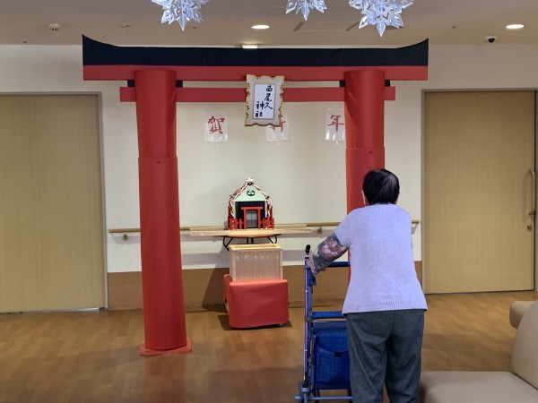 コロナ禍が落ち着かず、今年もすこや家・西尾久は、ホームに神社を作りました。