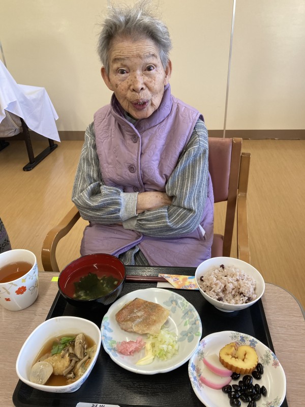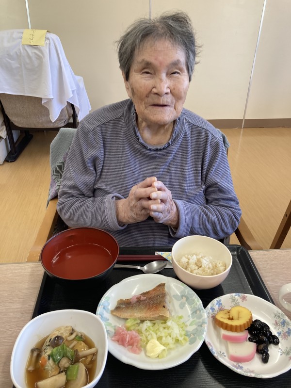 お昼ごはんにはお正月メニューのおせち風のご飯も出たのでご紹介いたします(^^ゞ
