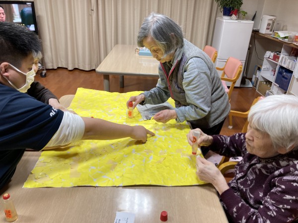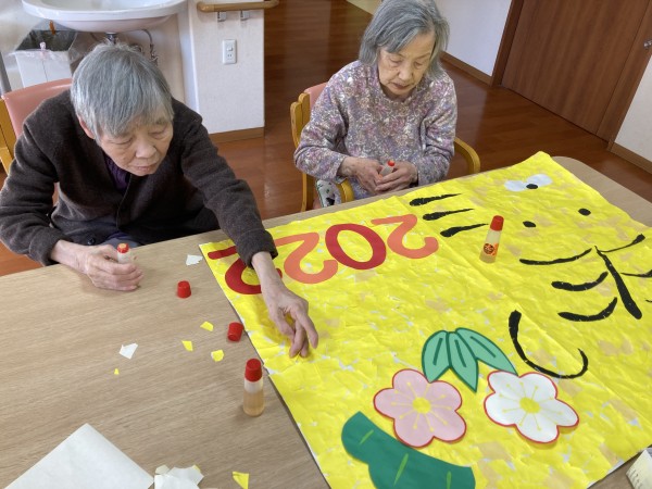 昨年になりますが、利用者様と一緒に今年の干支の壁画を作製してる様子です。