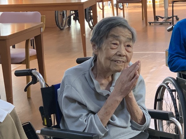 笑顔で手を合わせる102歳様。
