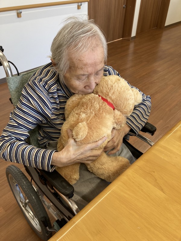 プレゼントのぬいぐるみです。大好きなのでしっかり抱きしめておられます( ^ω^)・・・