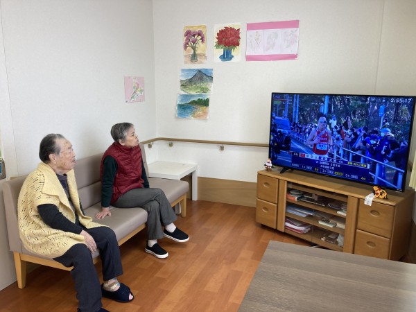 箱根駅伝を真剣に見ていらっしゃいました。テレビ越しでも選手に声援を送る姿が印象的でした(^^♪