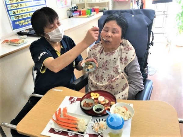 グループホームみんなの家・横浜三保2では、毎年お正月料理は豪華に、1階、2階合同でお正月の集いを行っています。