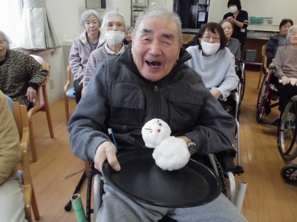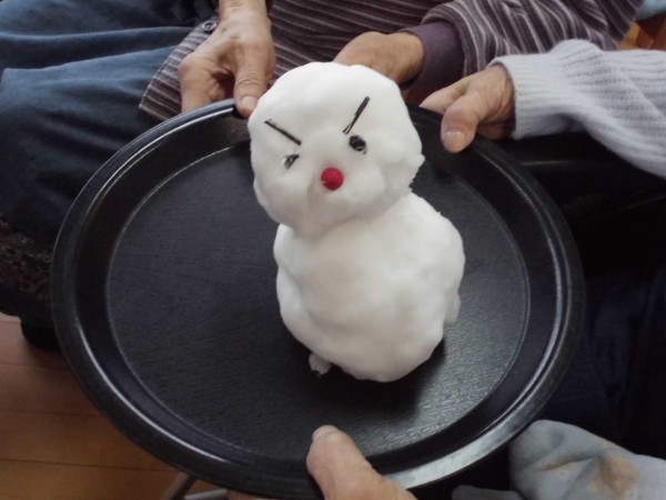 庭の雪を集めて雪だるまを作りました・・・