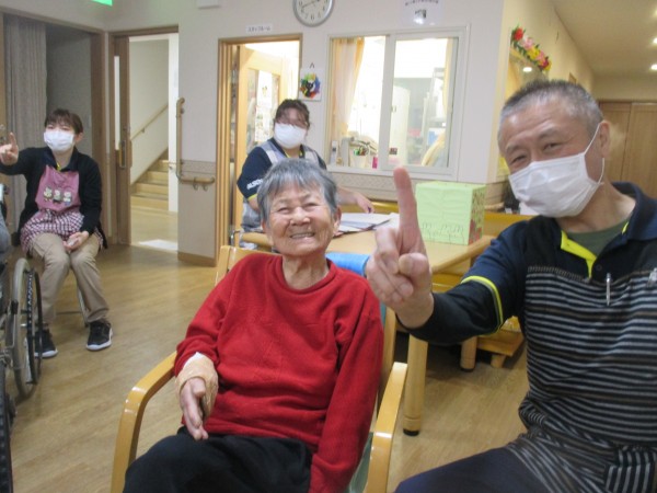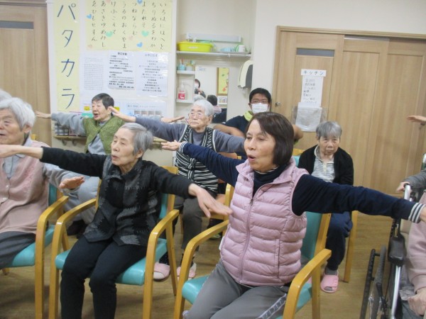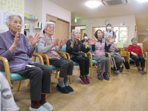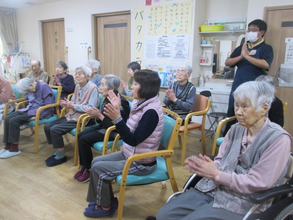 初詣のあとは、いつものように体操に参加され、手と足の運動を行いました。