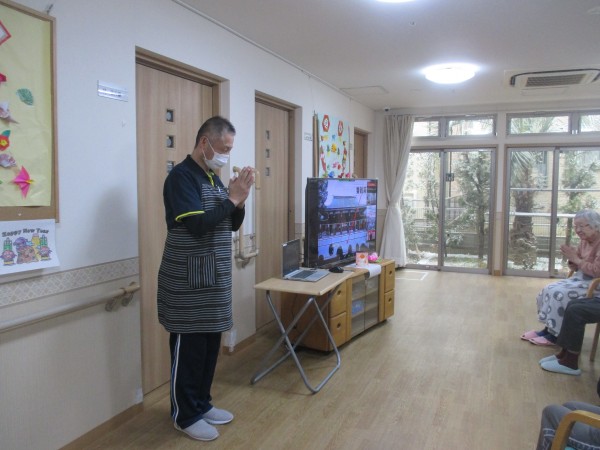 明治神宮の紹介とともにご入居者様、職員もリモートでお参りしました。