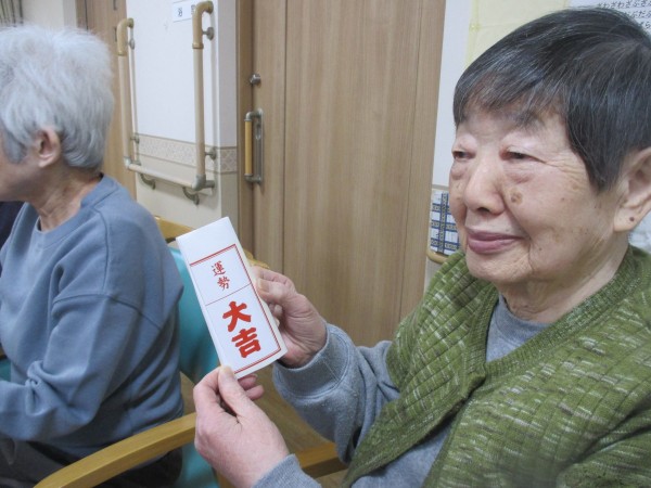 おみくじをひいていただき、「大吉」「中吉」等を見てにっこりと喜ばれてました。