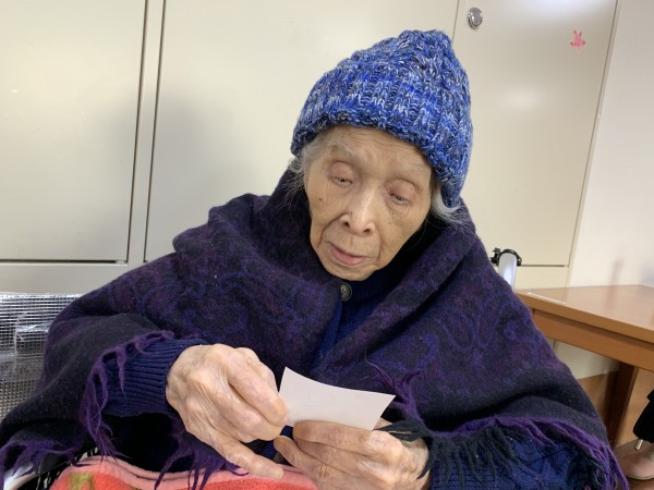 三姉妹の娘様のお名前が書いてあるカードを見つめていらっしゃいます。