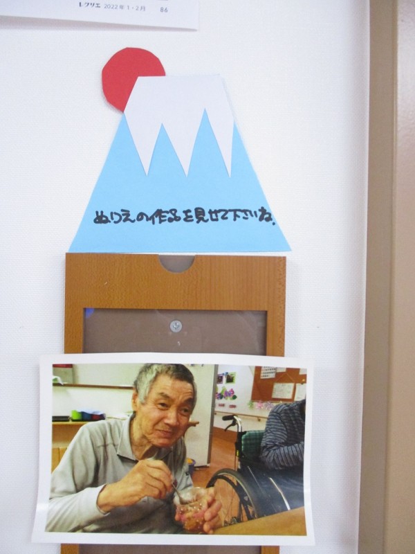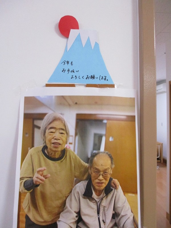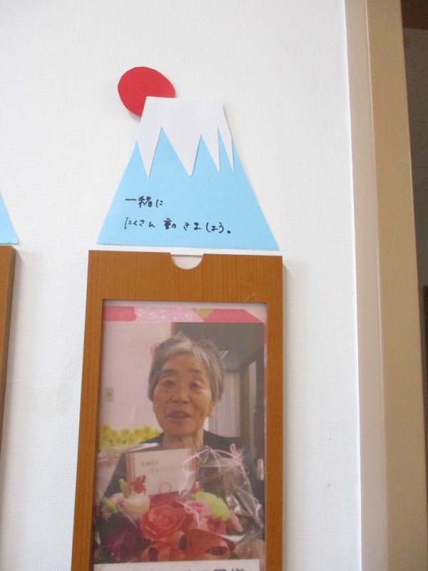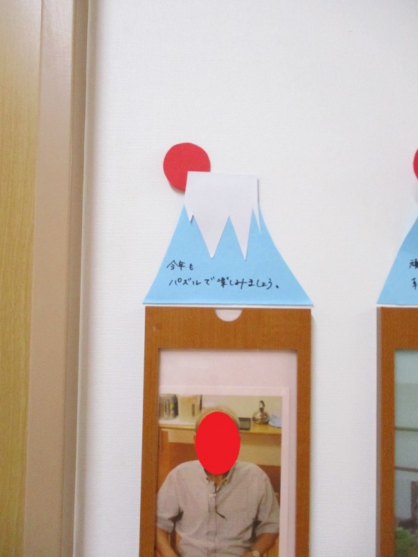 1階の入居者様のお部屋の入口に初日の出を飾らせていただきました!!