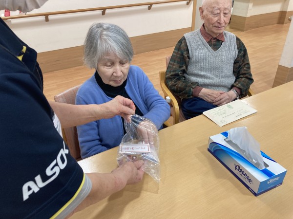 リモート初詣は、パワースポットである明治神宮の映像が映し出されました!本殿での大勢の参拝客の姿や、亀石や、大鳥居、夫婦楠、清正の井戸、や御苑など参拝コースのスポットや御朱印の写真、明治天皇のお姿を鑑賞されました。手作りのおみくじもご用意して、ひいて頂きました♪
