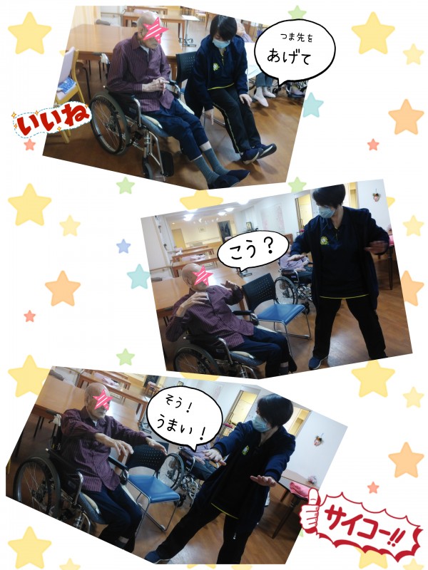 本日のアシスタントは、ケアスタッフの岡田くんです。ガンバレ!