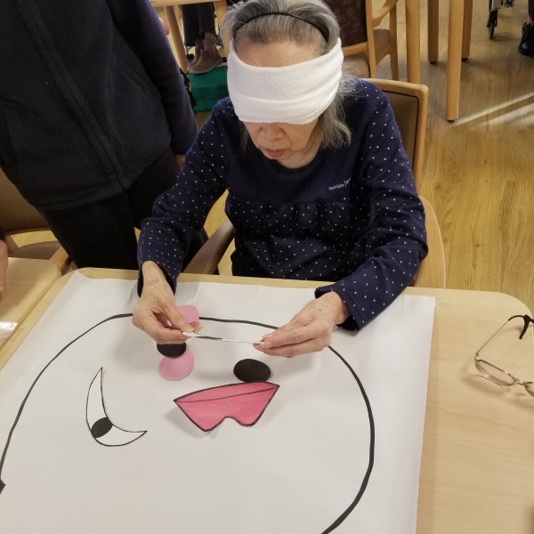 皆さん、目隠しされても上手にパーツを並べてましたよ