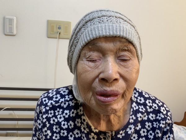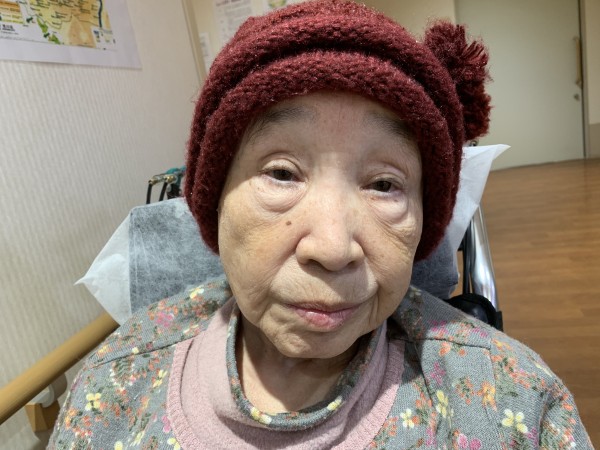 こちらも、娘様とご主人様がご飯のお供やらを持って来てくださった時に、一緒に届いたニット帽が最近の定番スタイルの入居者様。