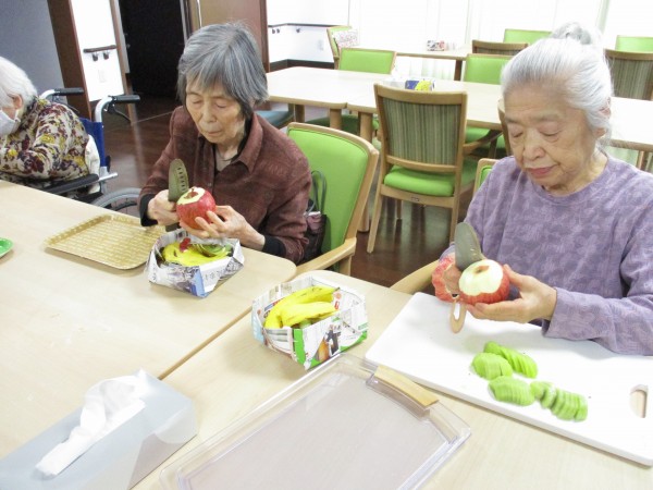 キウイの皮むき。リンゴも皮むき。