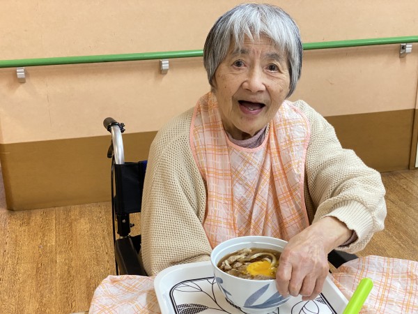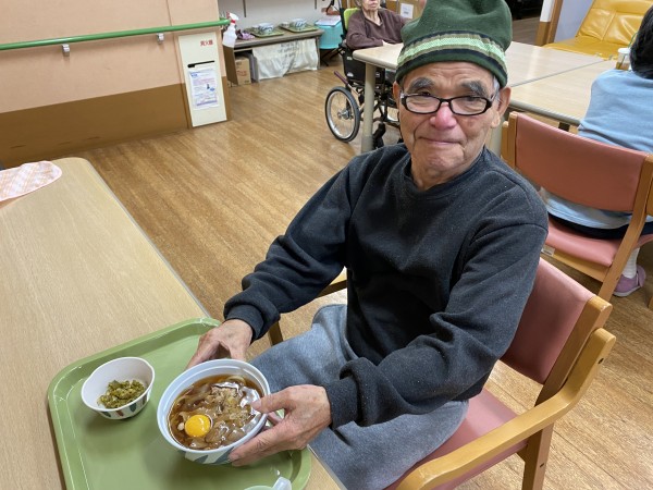 卵を加えて、肉月見うどんを提供しました(^O^)/