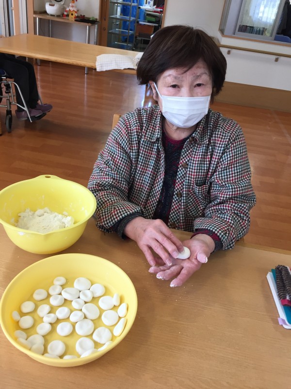 お餅の代わりに手作りの白玉です♪利用者様に手伝って頂きました!ありがとうございます(^^)/