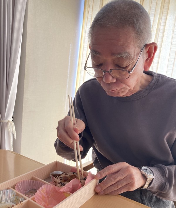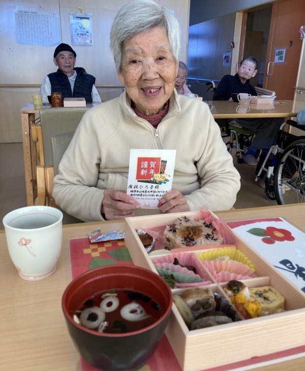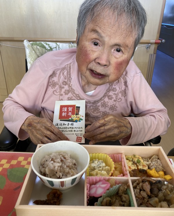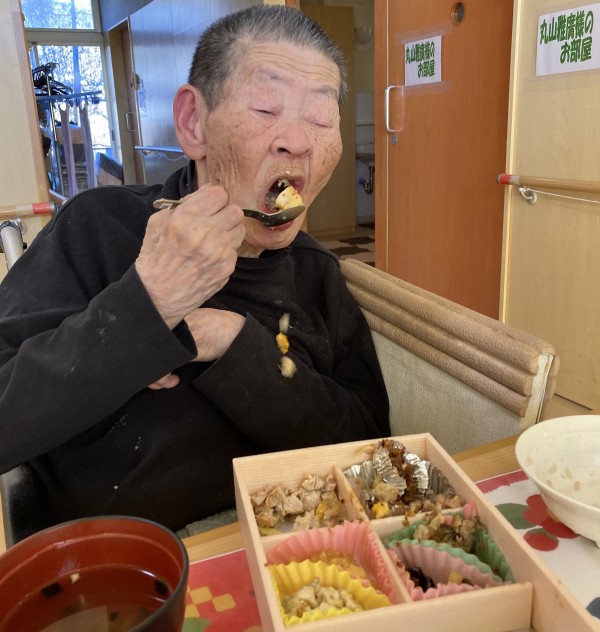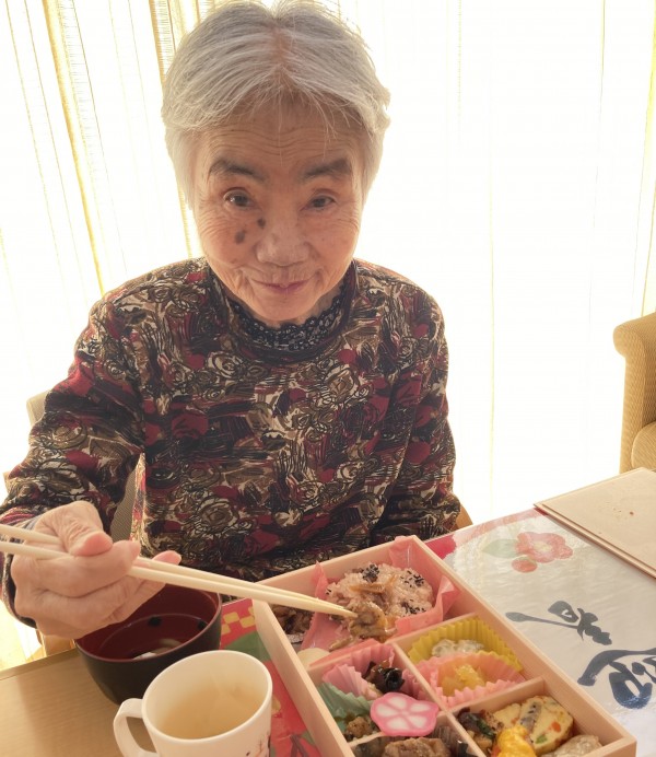 元旦のお昼ごはんに、仕出しですがおせち料理を召し上がっていただきました。