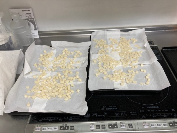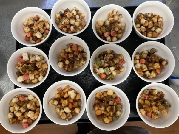 完成されたあられをおやつの時間に頂きました!