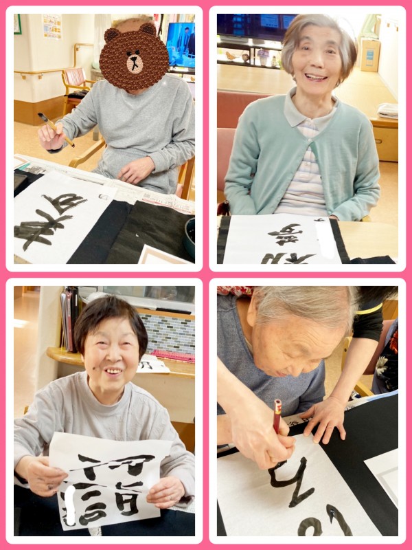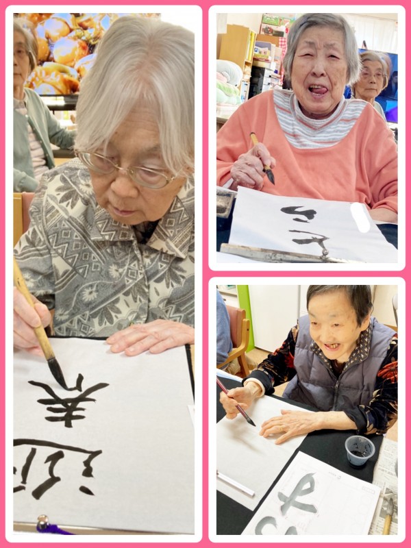 レク係が用意してくれた見本を見ながら一生懸命書いて下さいました。