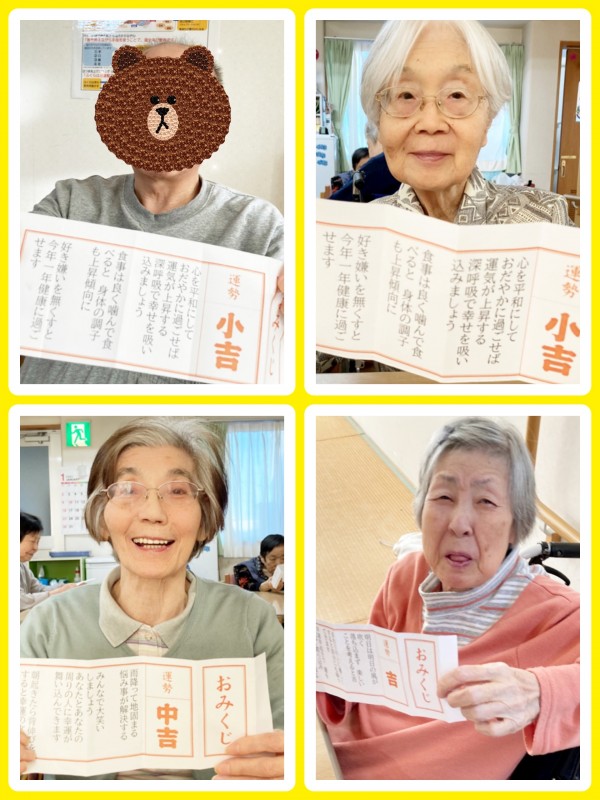 甘酒にほんのり赤くなってお正月気分満喫のレクになりました。