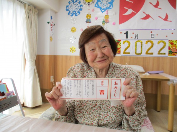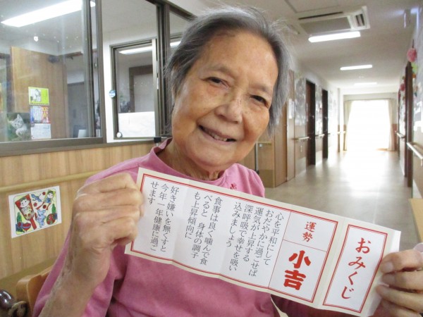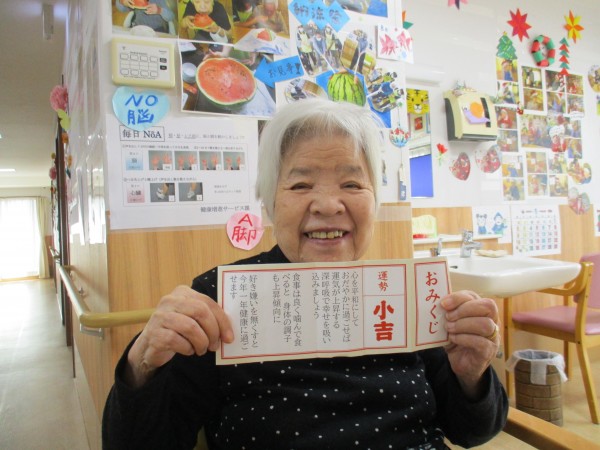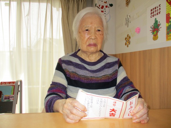 やはり入ってました!!「大吉」です。K様もビックリ!?嬉しいような悲しいような・・・お風呂上がりで「ちょっと疲れちゃった・・・」