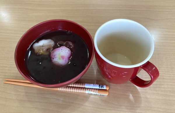 あったか~いお汁粉に色とりどりのお麩を浮かべて召し上がっていただきました。