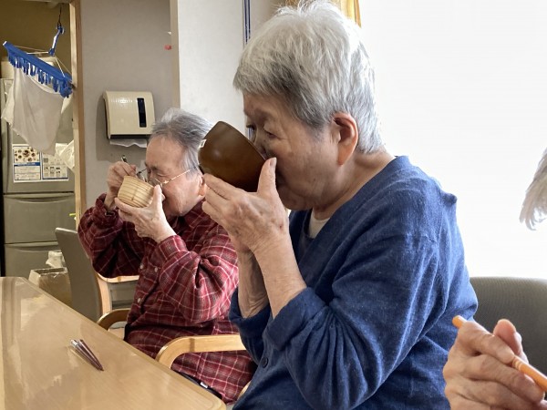 さて、1月11日に暦通りに鏡開きを行いました。とはいえここは高齢者施設、鏡餅を飾っていてもご利用者様にお餅はご法度。