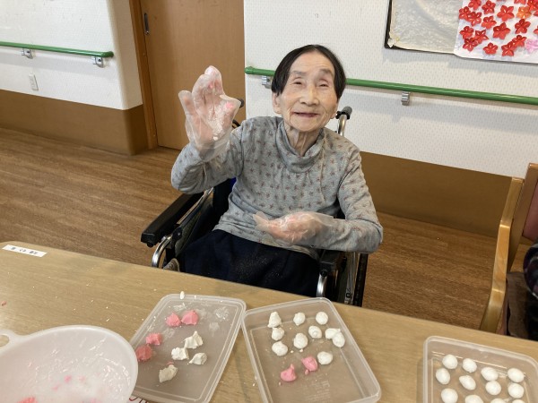 入居者様は、笑顔で白玉を沢山丸めてくださいました♡
