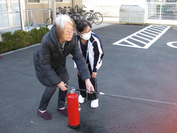 避難訓練に合わせて、消防署への通報訓練と初期消火訓練も行いました。